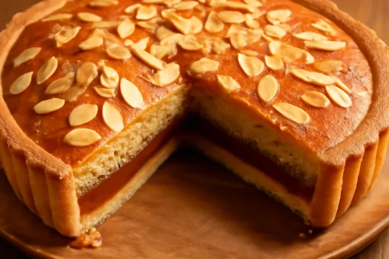 Miután a sütemény kész, hagyd teljesen kihűlni. Tálald szeletelve, mandulával díszítve.