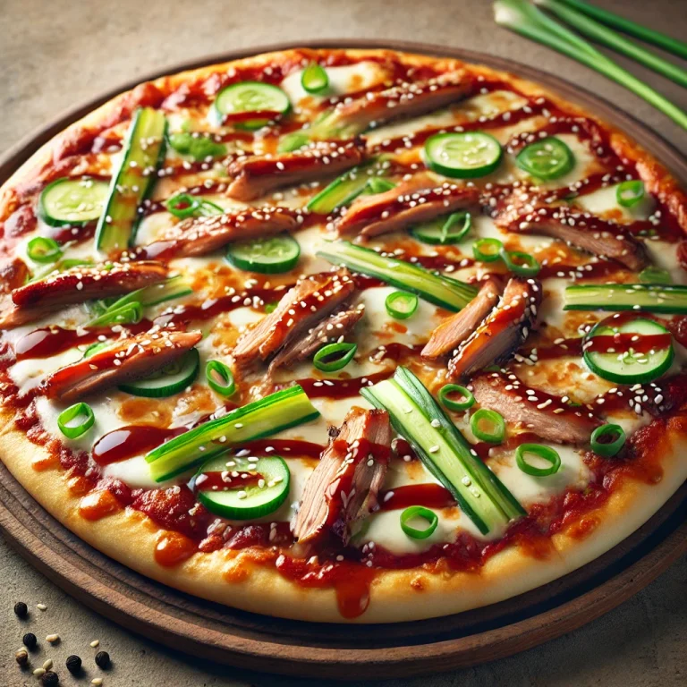 Szórd meg a pizzát reszelt mozzarellával, majd helyezd rá a vékonyra szeletelt pekingi kacsa darabokat.