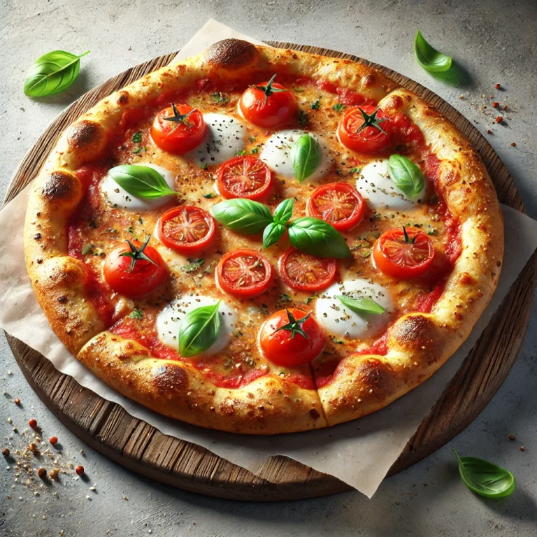 Vedd ki a pizzát a sütőből, és hagyd pihenni 2-3 percig. Tálald frissen, hogy az összes íz tökéletesen érvényesüljön.